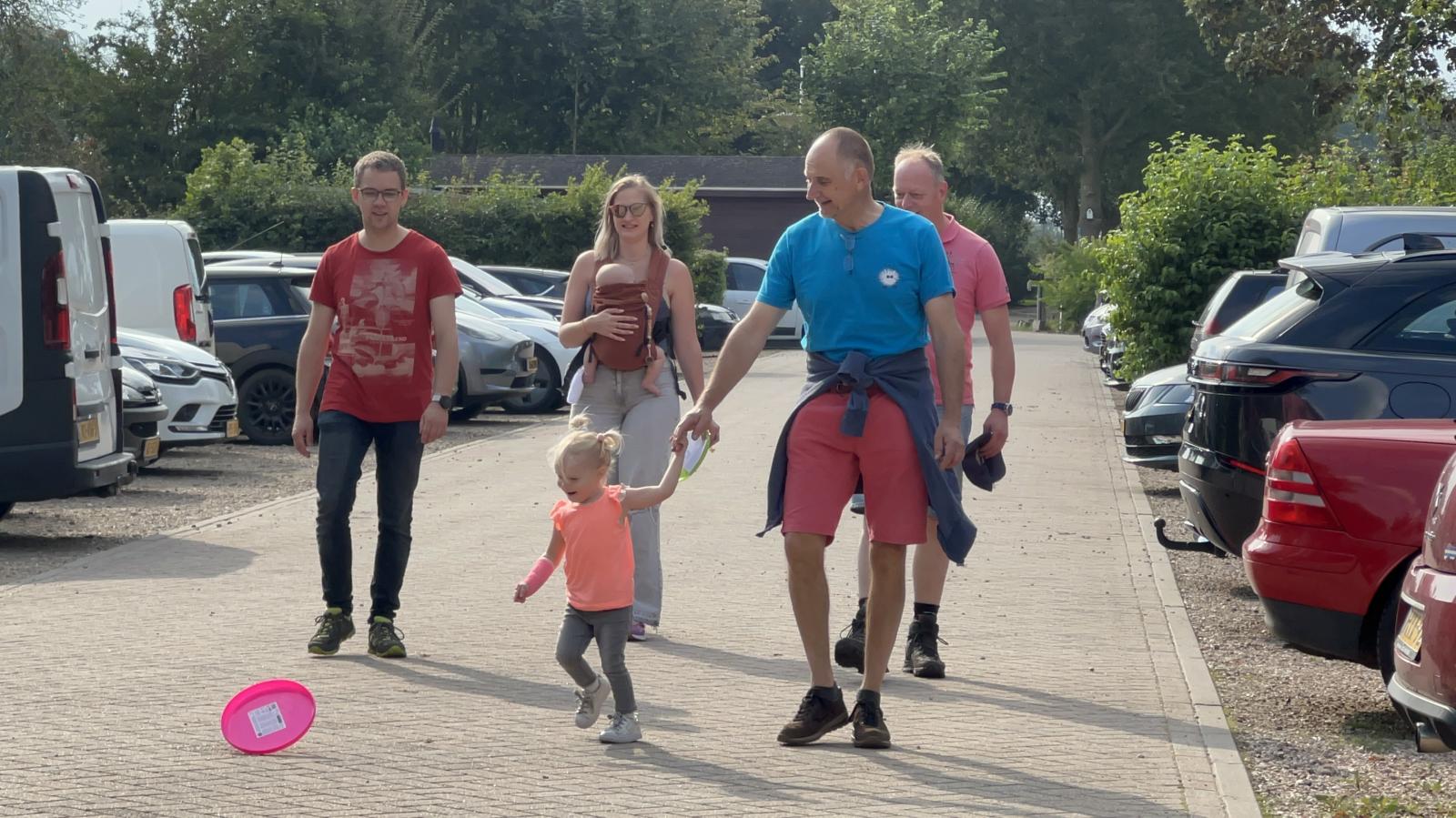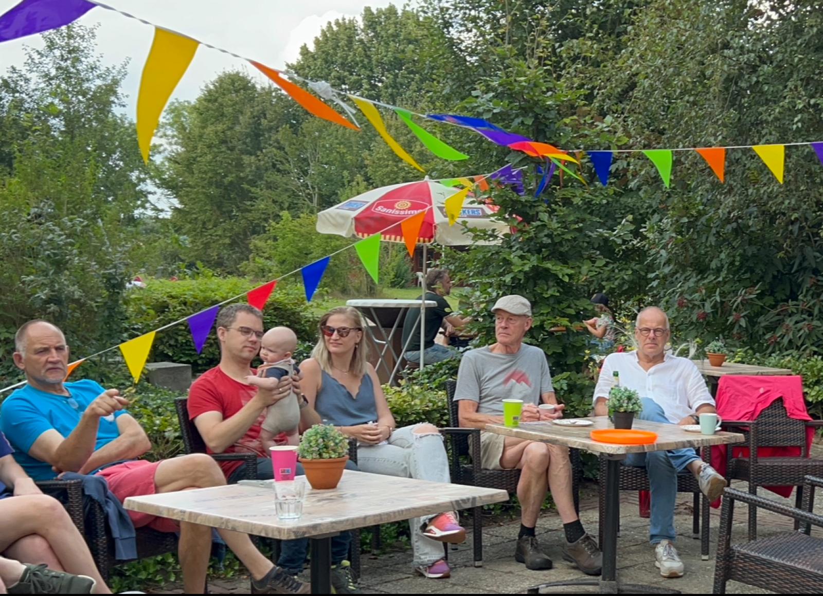Met de hele vereniging zijn we samengekomen op Landgoed Overbetuwe in Heteren. Daar is iedereen ontvangen met koffie en gebak. Er was een hele grote opkomst op deze zonnige dag. Nadat Ries een welkomstwoordje had gedaan kon het middagprogramma beginnen. De activiteiten commissie, die speciaal voor dit feest was aangesteld, had een leuke activiteit georganiseerd. Mona heeft kort een uitleg gegeven en toen konden we beginnen. In verschillende groepen zijn we begonnen aan een frisbeewandeling met een aantal leuke opdrachten tussendoor. Het team dat tijdens de wandeling het minst aantal worpen had met de frisbee, die heeft gewonnen. Voor de allerkleinste was er een korte wandeling met opdrachtjes op de kinderboerderij.