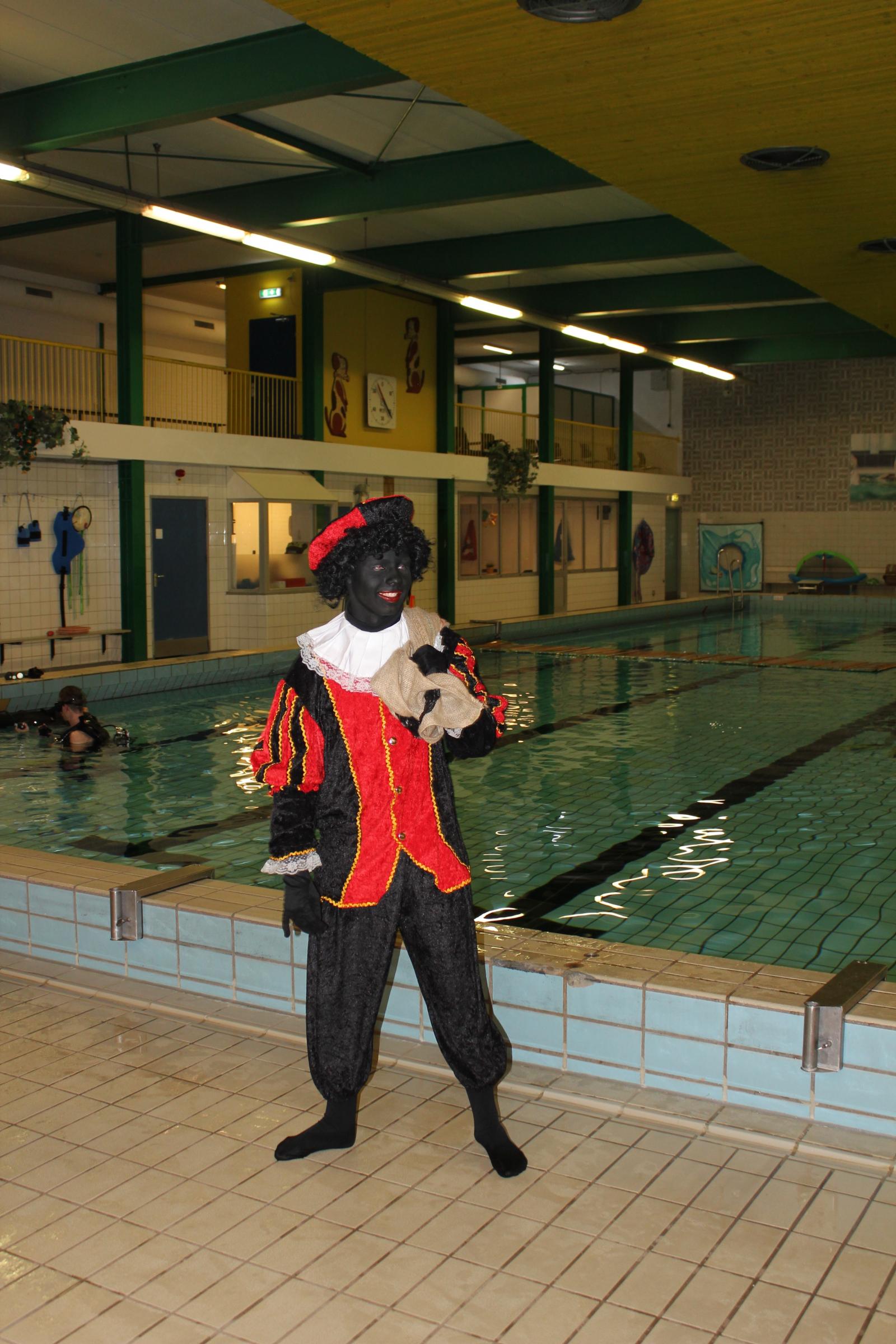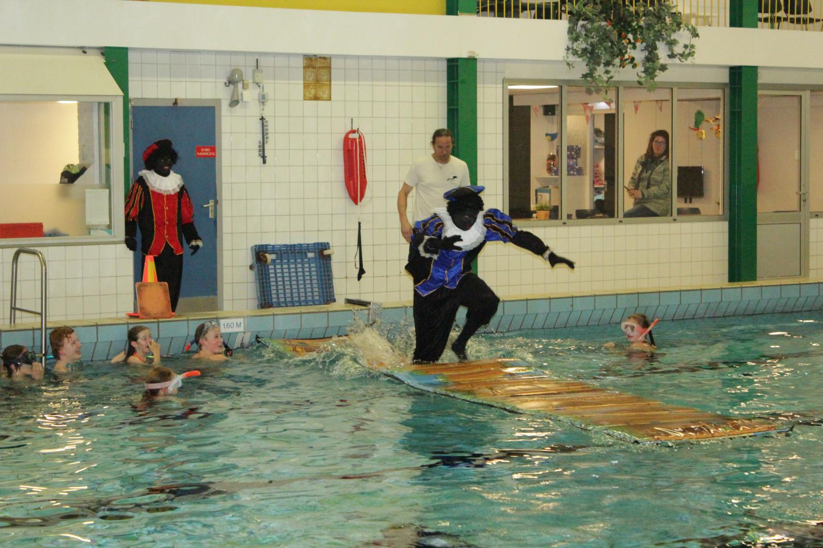 Er zijn pepernoten uitgedeeld en spelletjes gespeeld. De pieten zijn zelfs over de lange mat gerend en zo in het water geplonst!