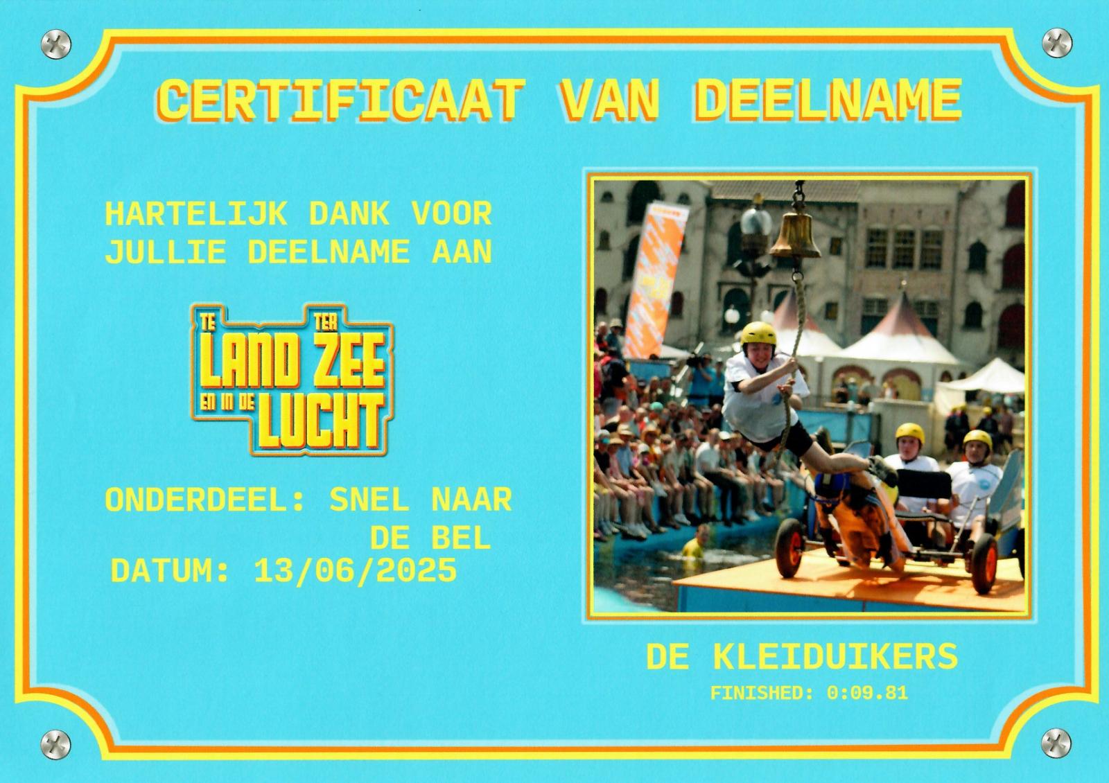 Arnoud, Vera en Peter hebben op vrijdag 13 juni 2025 deelgenomen aan het televisieprogramma: Te land, ter zee en in de lucht. Samen met Wouter-jan, Antoni, Dirk en Adriaan hebben zij een voertuig gebouwd met het thema: Duiken. Hiermee hebben ze deelgenomen aan het onderdeel: Snel naar de bel.