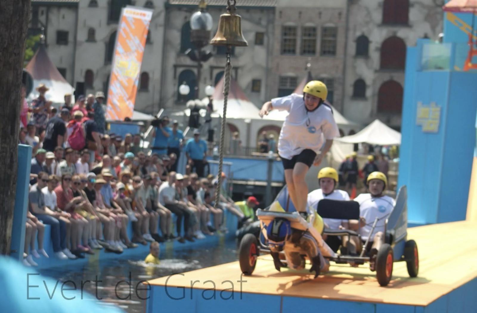 In september 2024 besloten we spontaan een aanmeldvideo op te nemen met de gedachte dat wij toch niet door de selectie zouden komen. Een paar maanden later kregen we mail... we moesten binnen twee weken een complete technische tekening aanleveren. Dus meteen het bouwteam bij elkaar geroepen en een spoedvergadering ingelast. Een heel plan werd besproken en de eerste schetsen werden al gemaakt. Een paar vrije avondjes verder en de tekeningen waren helemaal af. Toen een paar weken later kregen we telefoon. De redactie. Ze waren heel erg enthousiast over onze kar en wilde van alles weten over onze duikvereniging. Ook kregen we de kans om ons verhaal bij de kar toe te lichten. Weer een paar weken laten kregen we ineens een mail: "Gefeliciteed Waaghalzen! Jullie zijn geselecteerd om mee te doen aan Te land, ter zee en in de lucht." En toen was het dus officieel. We konden gaan bouwen aan onze kar en natuurlijk ons publiek uitnodigen. Ons bouwteam was verdeeld in 2 kanten. Team constructie en team creatief. De ene helft boog zich over het bouwen van een stevige constructie terwijl de andere weekenden lang bezig waren met papier-mâché en verf. De bouwavonden waren altijd één groot feest! We hadden dit hele avontuur voor geen goud willen missen!