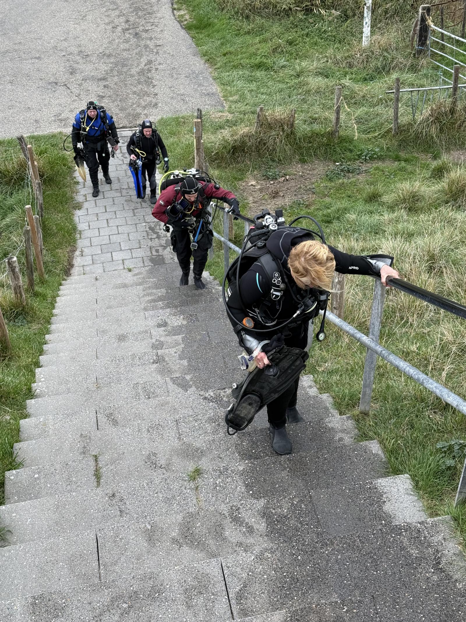 Weer aangekomen bij de auto, gauw omkleden, spullen opruimen, waarop iedereen zijn verhaal kon doen van de onderwaterbelevenis.