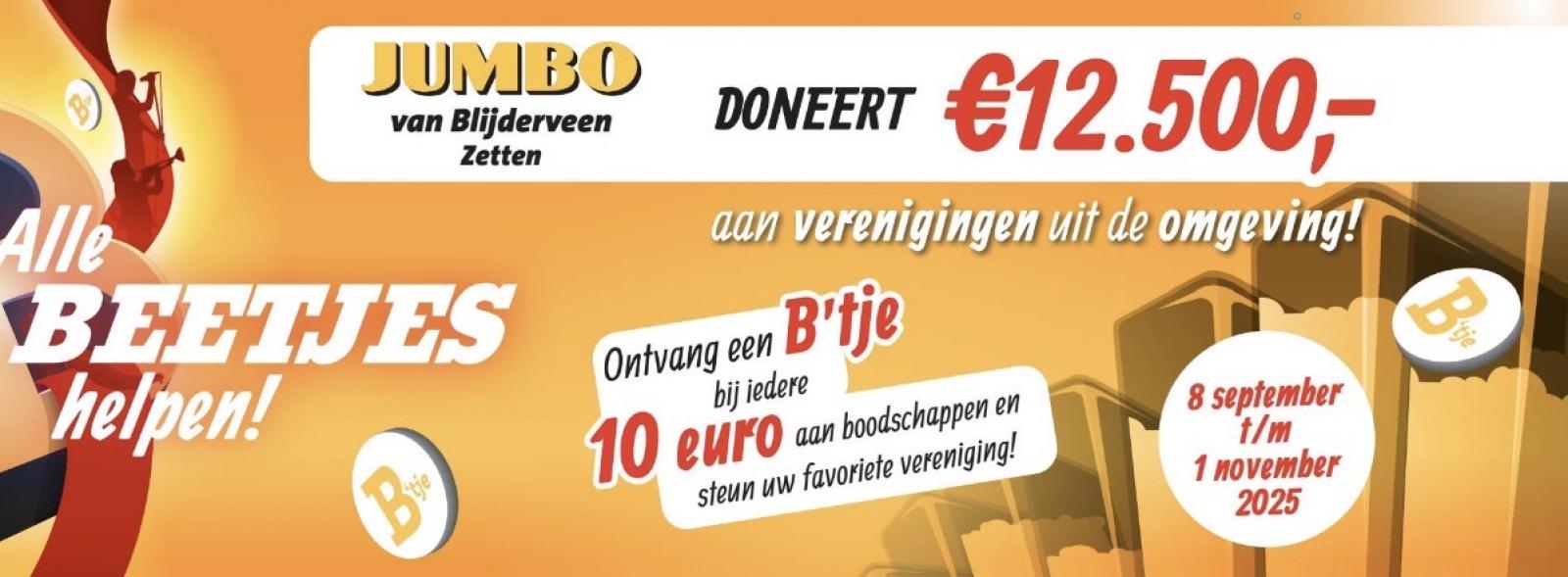25 juni van dit jaar stond er op de facebookpagina van Jumbo van Blijderveen in Zetten een bericht dat ze lokale verenigingen financieel wilden steunen. Wat een enorm mooi gebaar. En flink ook hoor. € 10.000 voor de 18 verenigingen die zich als eerste aanmelden. Dus meteen de benodigde informatie verzameld en de inschrijving gedaan.