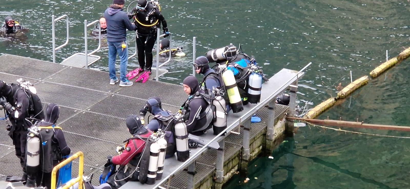Bij de duiklocatie was het erg druk. Het viel niet mee om een parkeerplek te vinden, maar het lukte iedereen. De briefing, de duiklocatie bekijken en alles doorspreken. Aanmelden, groepsindeling en wachten tot het moment dat de groep het water in mocht. 14:15 uur was onze groep aan de beurt om te gaan duiken. Blijkbaar was er pauze voor de veiligheidsmensen en was de duikstek leeg en verlaten. De drukte was binnen bij het aanmelden.